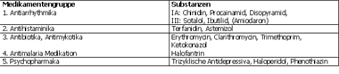 Tabelle 1: Beispiele QT verlängernder Medikamente