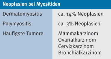 - verschiedene Muskelerkrankungen mehr oder weniger häufig mit Neoplasien einhergehen.