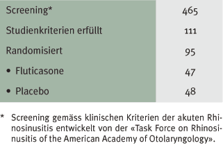 - Die Patienten erhielten entweder 200 µg Fluticasone Propionat oder Placebo als Nasenspray (1x/d während 21 Tagen)