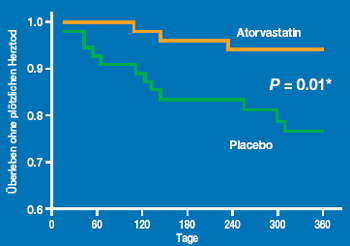 Abbildung 2: Überleben ohne plötzlichen Herztod mit und ohne Atorvastatin | |