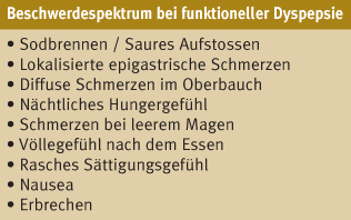 Unbestritten ist die initiale Aufklärung über die Gutartigkeit der Erkrankung. Die funktionelle Dyspepsie kann zwar die Lebensqualität aber nicht Lebenserwartung erheblich beeinflussen.