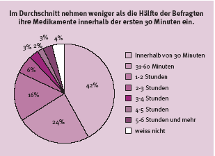 Abbildung 1: Durchschnittliche Zeit vom Einsetzen der Symptome bis zur Medikamenteneinnahme