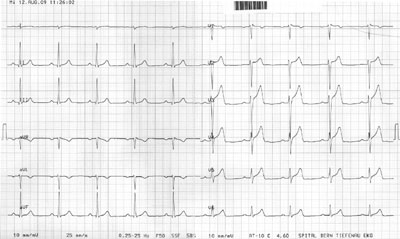 Nach 5 Tagen Rocephin 2g/Tag iv. ist der AV-Block vollständig verschwunden (siehe EKG unten). Die Labortests bestätigten die Lyme-Borreliose.