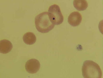 Der Blutausstrich unserer Patientin war relativ atypisch, wodurch die Diagnostik auch etwas erschwert wurde. Hier ein typisches Bild einer Thalassämie, von einem anderen Patienten: