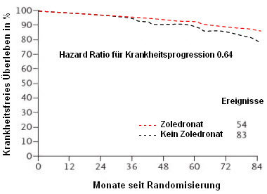 Abbildung 3: Krankheitsfreies Überleben mit und ohne Zoledronat