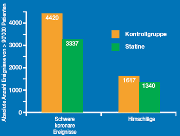 Die Behandlung mit Statinen senkt nicht nur das koronare Risiko signifikant, sondern auch das Hirnschlagrisiko. Eine im Lancet publizierte Metaanalyse zeigte durch die Verabreichung eines Statins neben einer Reduktion des koronaren Risikos um 23% eine signifikante Senkung des Hirnschlagrisikos um 17% [12]: